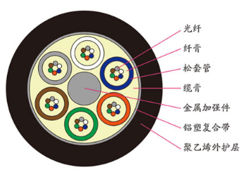 金属加强构件、松套层绞填充式、铝-聚乙烯粘结护套通信用室外光缆